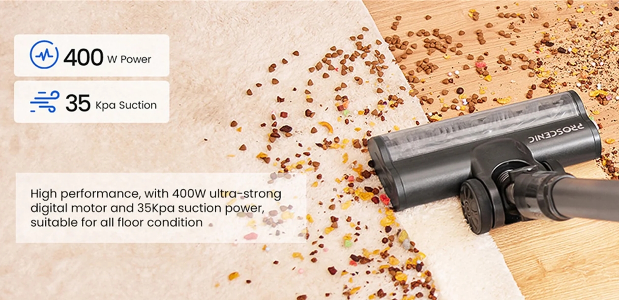 Az erős 400w-os motor által hajtva, 35kPa szívóerőre képes, így legyen szó akár szőnyegről, padlóról vagy egyéb felületről, biztos lehetsz benne, hogy összeszed mindent.