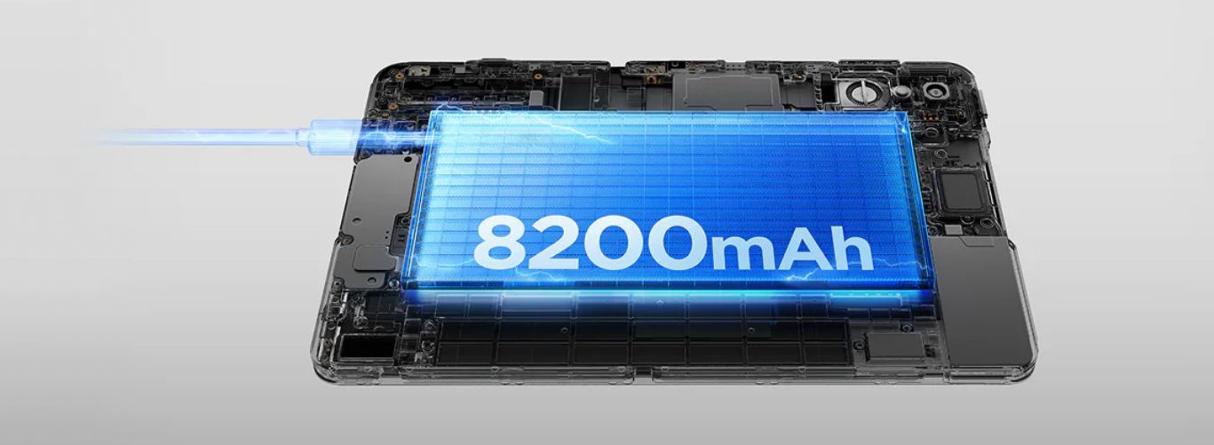 Az akkumulátor kapacitása 8200 mAh és Type-C csatlakozón keresztül tölthető nagyon gyorsan, 80W-tal.