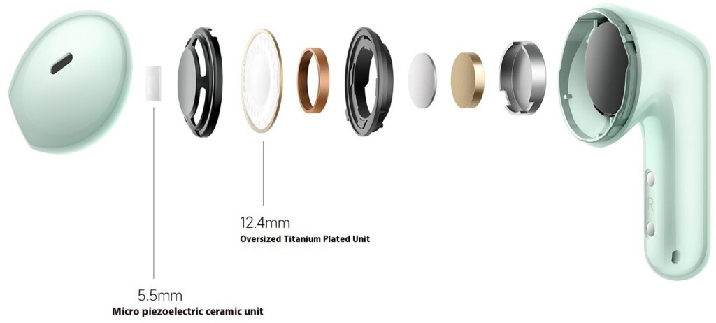 „A 12,4 mm-es szuper titánbevonatú membránegység és az 5,5 mm-es mikro piezoelektromos kerámiaegység használatával a két akusztikus egység kiegészíti egymást, tiszta és részletgazdag hangzást biztosítanak, és a gyönyörű dallam teltebbé és szebbé válik. Az üreg kialakítása ergonomikusabb, a félfüles kialakítás pedig kényelmesebb viseletet nyújt.”