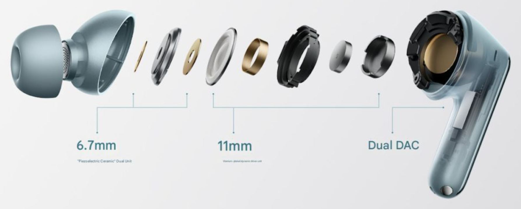Ez a hármas, koaxiális meghajtó rendszer egyénileg kezeli a hangszélek különböző tartományait, amit dual DAC és saját MIHC 2.0 kodek egészít ki a részletgazdagabb hangélményért. A fülhallgatók támogatják továbbá az LHDC V5, LC3, SBC és AAC kodekeket is, és megkapták a Hi-Res Wireless Audio tanúsítást.