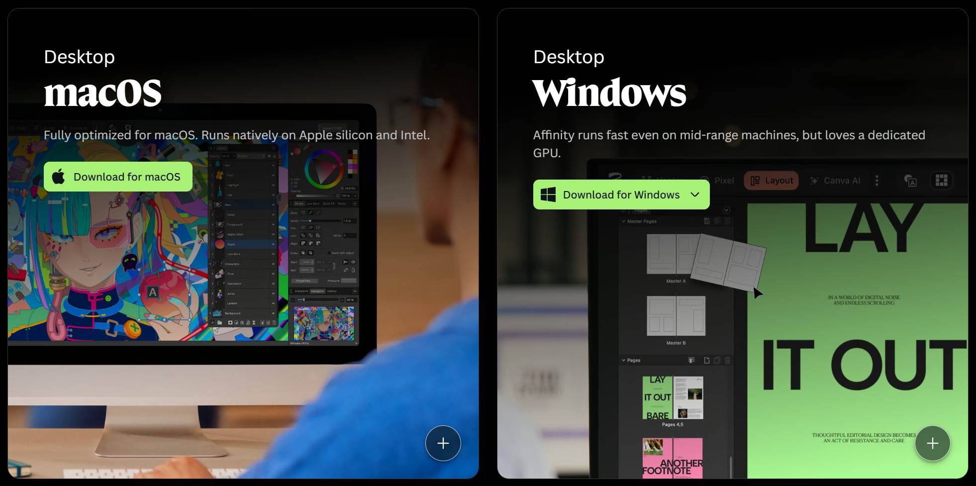 Elérhető Windows-ra és Mac-re is és tartalmazza a vektorgrafikus programot, a képszerkesztőt és a kiadványszerkesztőt is. Egyik sem csökkentett változat, mind teljesértékű, az AI funkciók pedig opcionálisak és sok tekintetben képesek felvenni a versenyt az Adobe szoftvereivel.