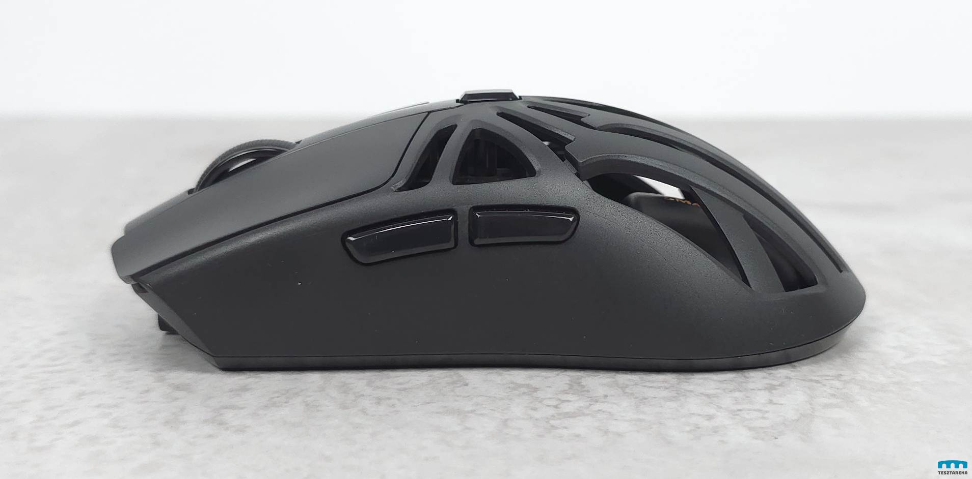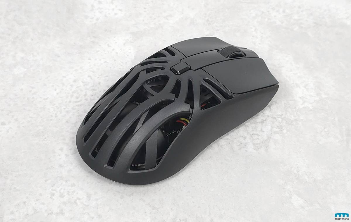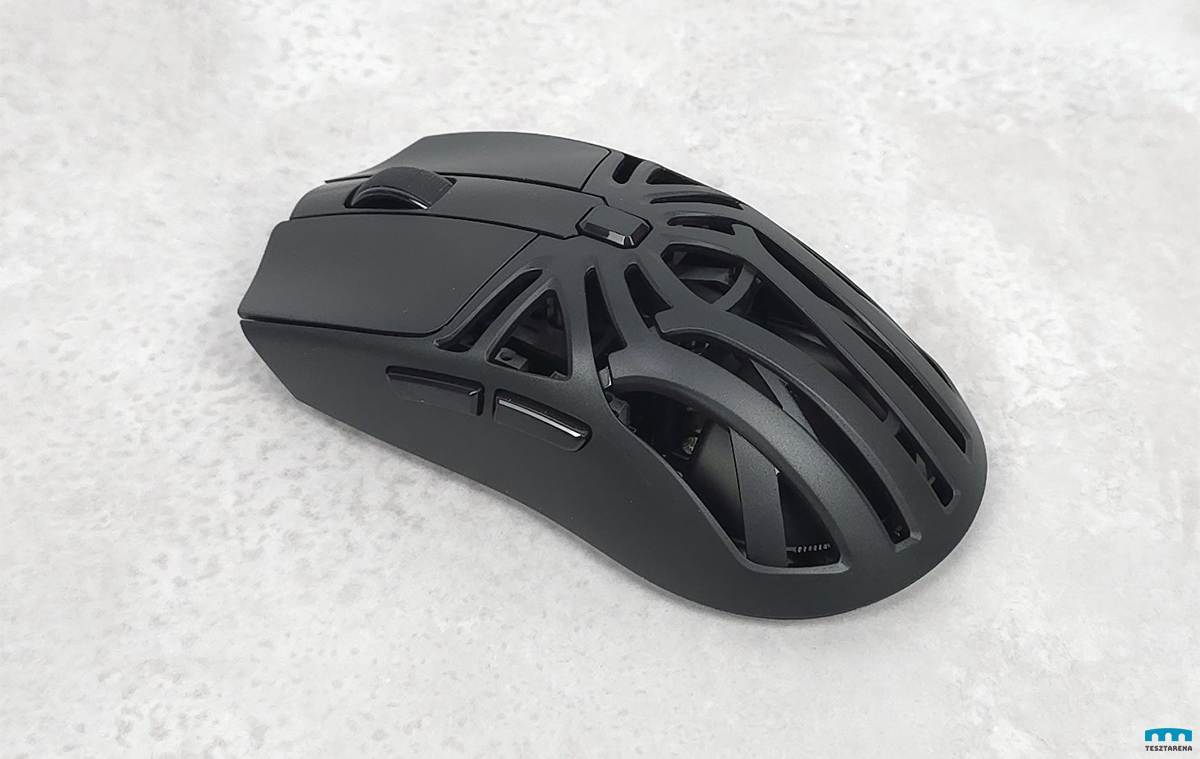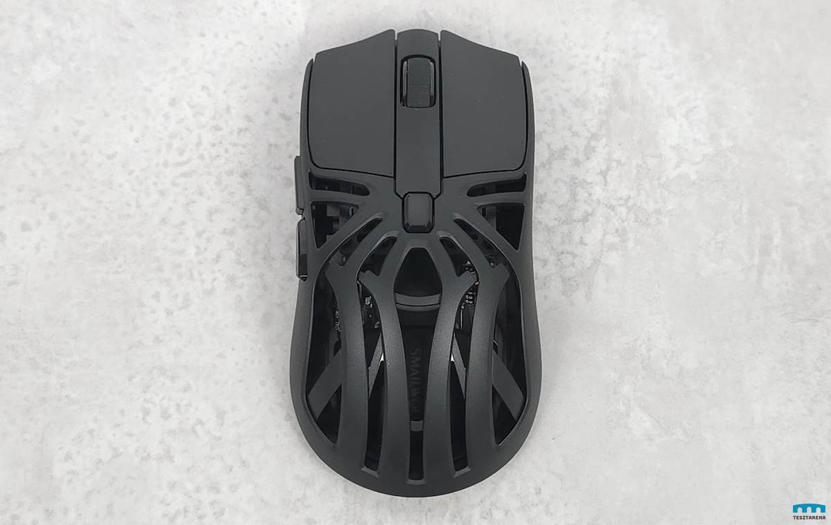 Nem extrém kicsi, de kompakt egér, 12 cm hosszú, a közepén 6cm széles és csak 70 gramm, vagyis nagyon könnyű, amiben a rácsos kialakításának is szerepe van.