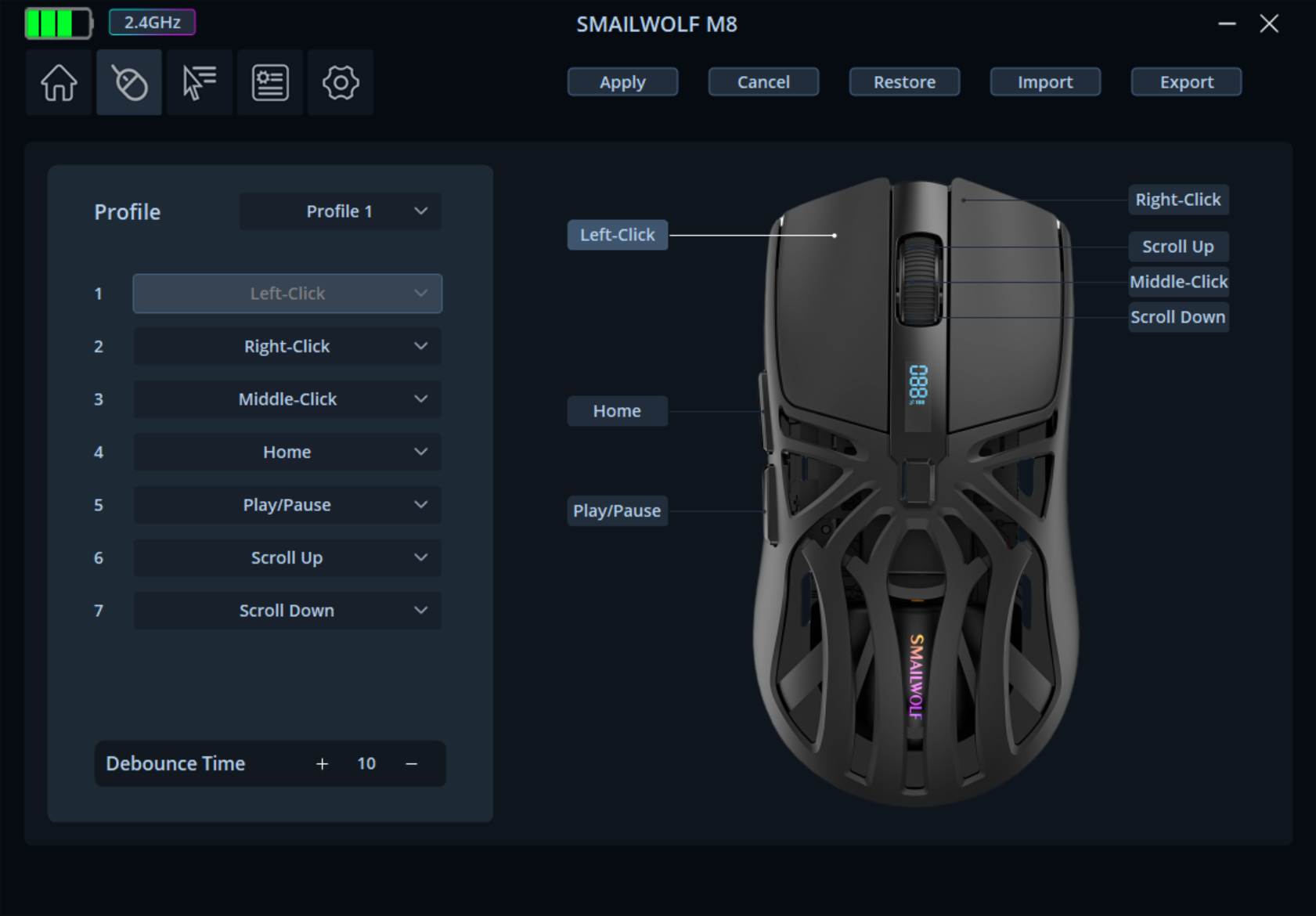 Az M8 nem egy átlagos olcsó vezetéknélküli egér, már azért sem, mert jobb szenzor és kapcsolók kerültek bele, amelyek szoftverrel finomhangolhatók és vezetéknélküli töltője is van. Na meg bluetooth mellett a saját adapterével is használható és még kijelzője is van!