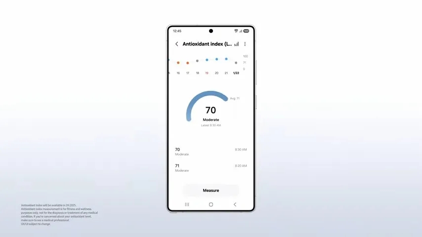A Galaxy S25 sorozat év eleji bemutatóján a Samsung röviden megemlítette a telefonokon futó Samsung Health alkalmazás egy közelgő funkcióját, az „Antioxidáns Index”-et. Ez a funkció a szervezet béta-karotin szintjét méri, és ennek alapján személyre szabott táplálkozási tanácsokat ad, hogy a felhasználó megfelelően étkezzen. A Samsung nem közölt további részleteket a működéséről, de az apró betűs rész szerint az Antioxidáns Index 2025 második felében válik elérhetővé. A One UI 8 Watch kiszivárgott APK-jainak köszönhetően most már jobban lehet látni, hogyan fog működni ez az Antioxidáns Index.
