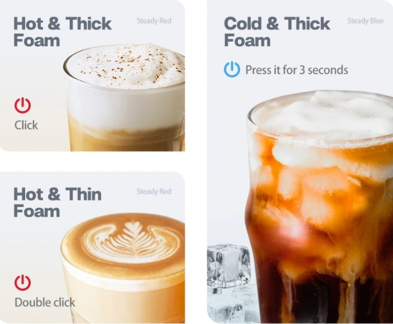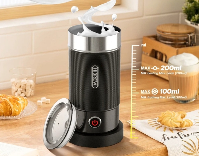 A HiBREW M1A tejhabosító pont azt tudja, amit egy otthoni kávézás szerelmese vár: gombnyomásra készít meleg vagy hideg tejhabot, akár lattéhoz, cappuccinóhoz, akár jeges italokhoz is.