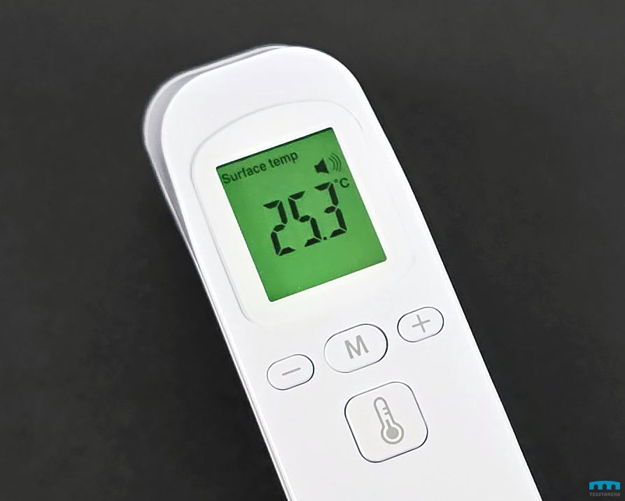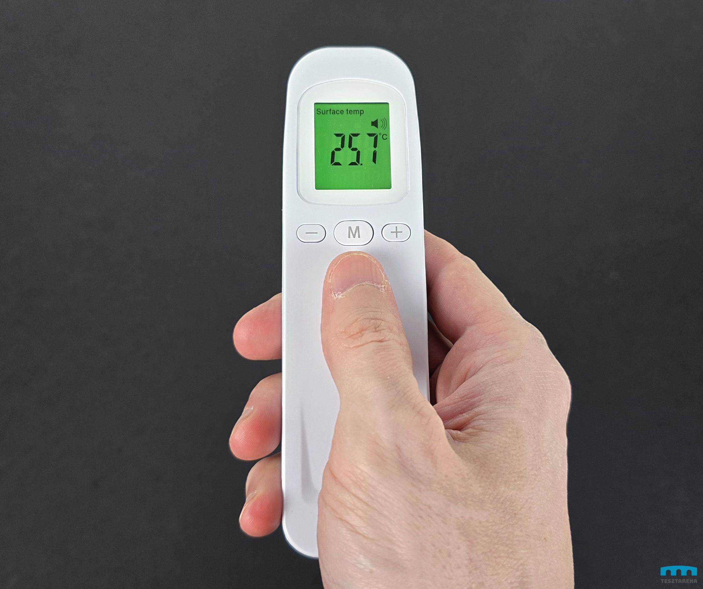 De tárgyak felszínének hőmérsékletét is tudja mérni, ami szintén pontosnak tűnik (mínuszba nem tud menni, de például a hűtőre simán méri a 7 fokot, vagy a melegvízre a 60-at).