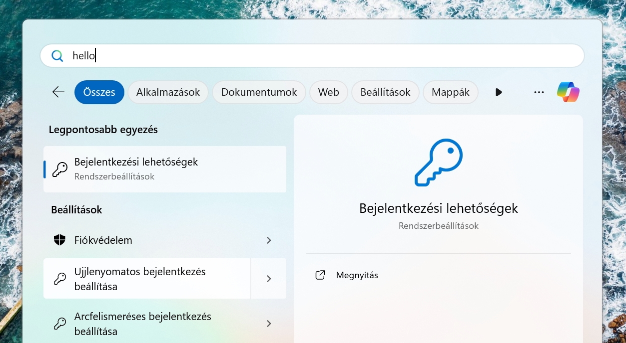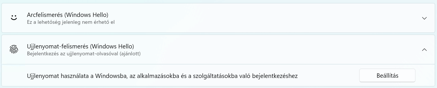 A beállítása egyszerű. csak rá kell keresni a “hello”-ra a Start menüben és “Ujjlenyomatos bejelentkezés beállítása”.