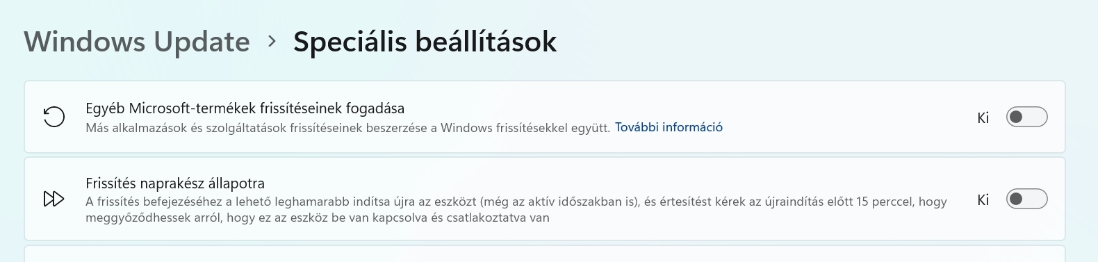 A Windows Update esetén engedélyezni kell az “Egyéb Microsoft-termékek frissítéseinek fogadása” opciót, hogy letöltse a szükséges drivert.