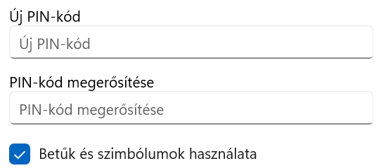 Egy PIN kódot is be kell állítani, ami csak szám lehet, de a “Betűk és szimbólumok használata” bejelölésével normál jelszó is beállítható.