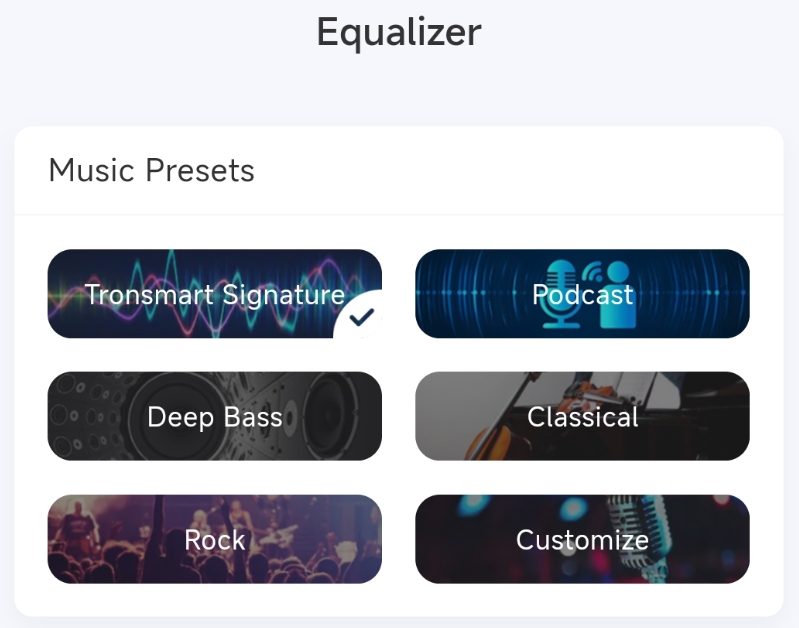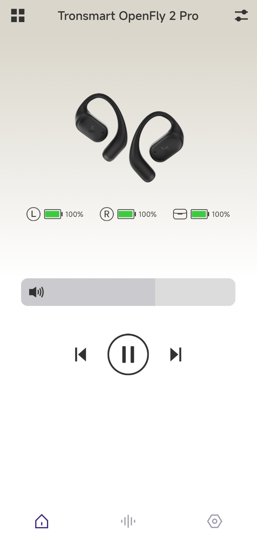Okos fülhallgató, a Tronsmart alkalmazással használható, amellyel frissíthető a szoftver és beállíthatók a fülhallgatók.