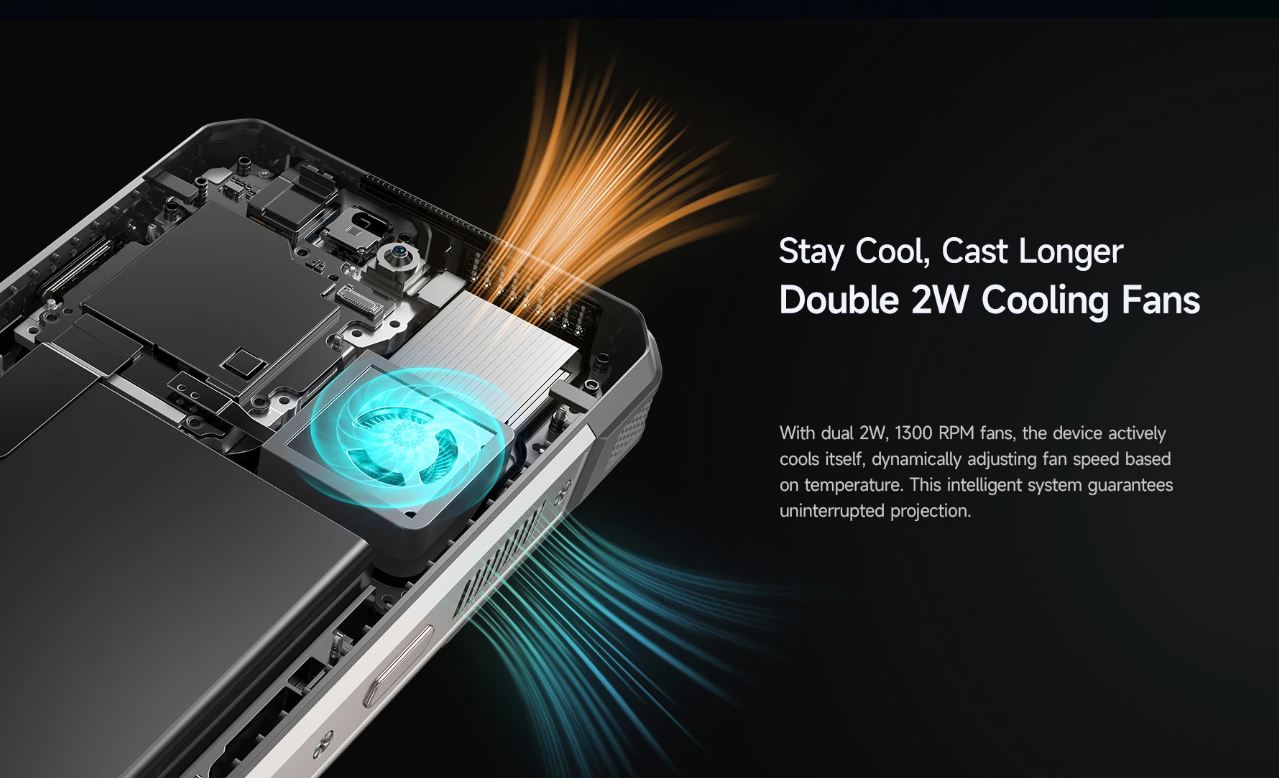 Ebben a telefonban egy normál DLP projektor van 854 x 480 pixel felbontással, 150 ANSI Lumen fényerővel és akár 100″ méretű képet is vetít.