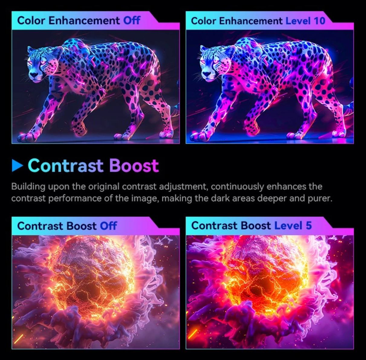 Hawk-Eye: Felnagyítja a képernyő középső területét, és bármelyik sarokban megjeleníti anélkül, hogy kitakarná a képet. Támogatja az Eagle Eye Éjjellátó módot is, amely sötét jelenetekben biztosít jobb láthatóságot.
