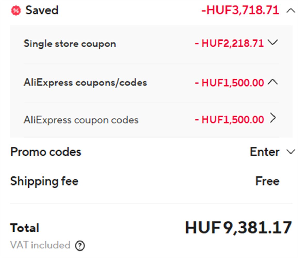 Vámmentesen érkezik ingyen szállítással és a 9300 Ft-os árhoz két kupont kell beváltani egymás után a vásárlás elindítása után. Az egyik a termék lévő GLEH045 store coupon és a másik a promo code, amely jelenleg az SR04VIO, vagy VIOSR04