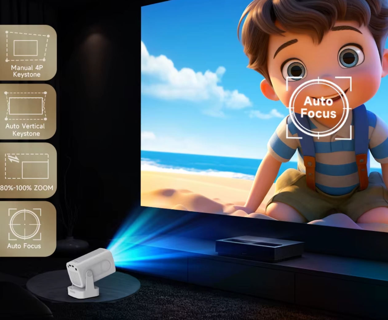 Mivel projektor, ezért a fókusz és a kép korrekció beállítása is fontos és mindkettőt önállóan elvégzi, ami nem is olyan régen még elképzelhetetlen volt ennyiért.