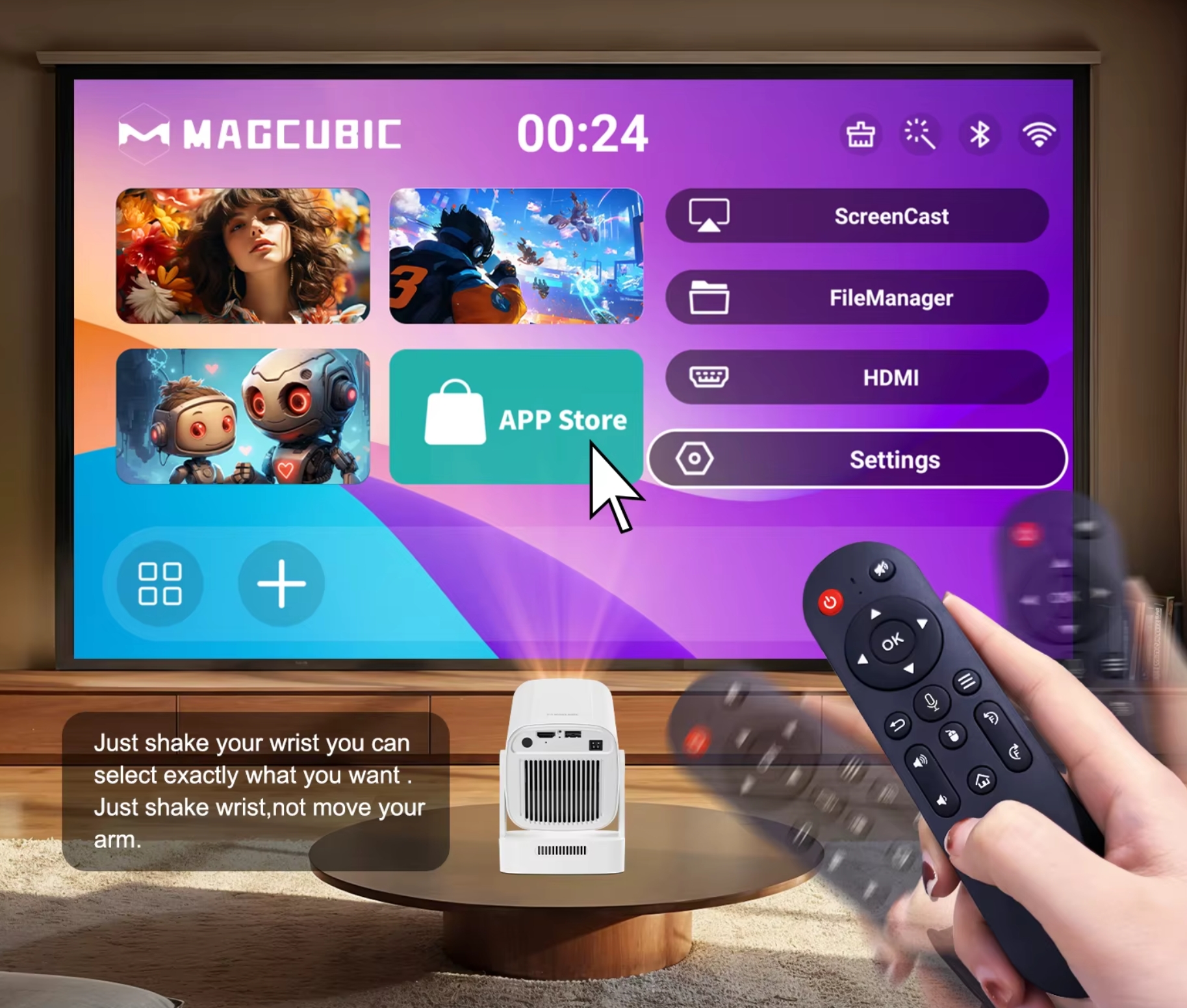 A Magcubic HY310 okos projektor és Android rendszerű, amit nem kötelező használni, de mivel van wifi 6-tal és bluetooth 5, így mindenképpen érdemes egy próbát tenni vele, mert szükségtelenné válhat külön eszköz.