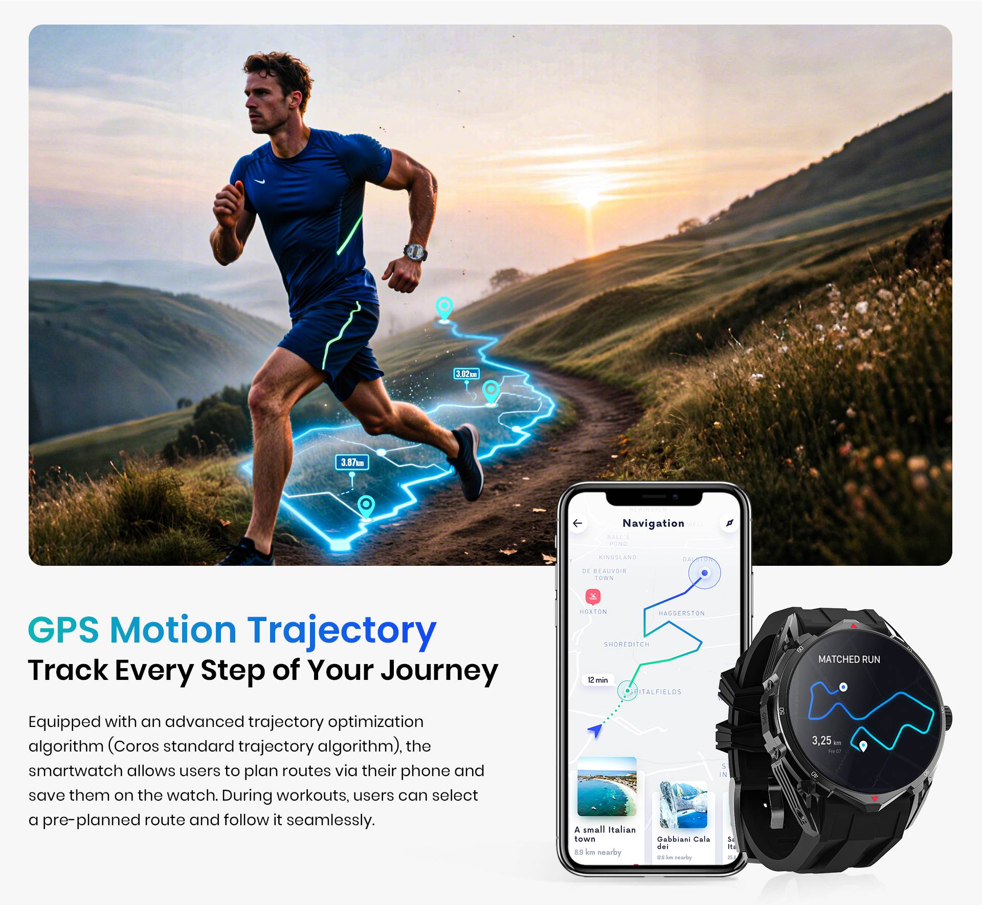GPS (Navic, GPS, BDS, Glonass, Galileo, QZSS) is van benne, ezért önmagában is megoldott a távolság, sebesség, stb. mérése és útvonalat is rajzol. Ez hasznos nem csak sport, hanem egészségjavító célzatú mozgások esetén is.