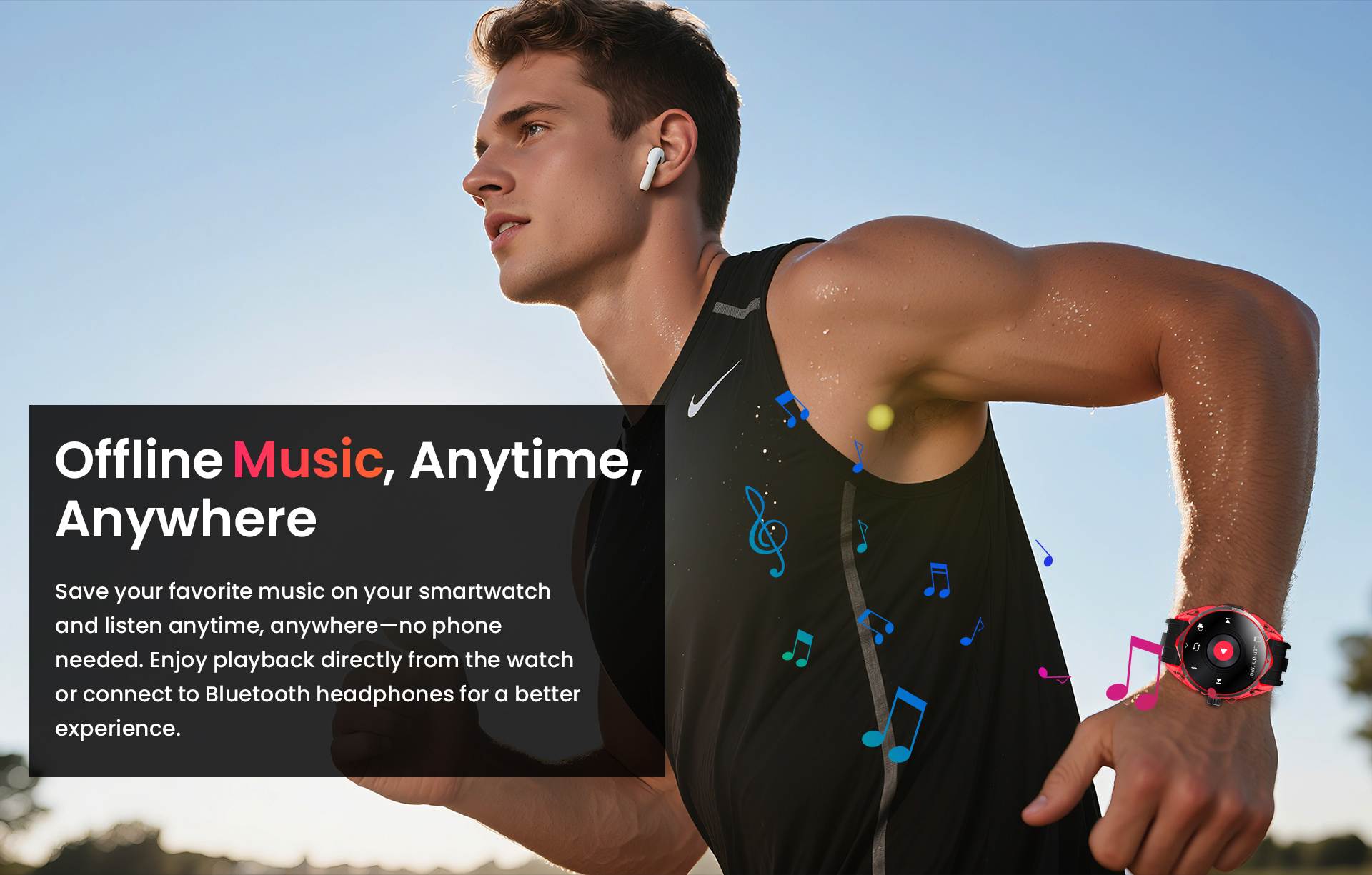 4GB belső tárhelye van, amelyről zenét is lehet lejátszani a saját hangszórójával, vagy bluetooth fül / fejhallgatóval.