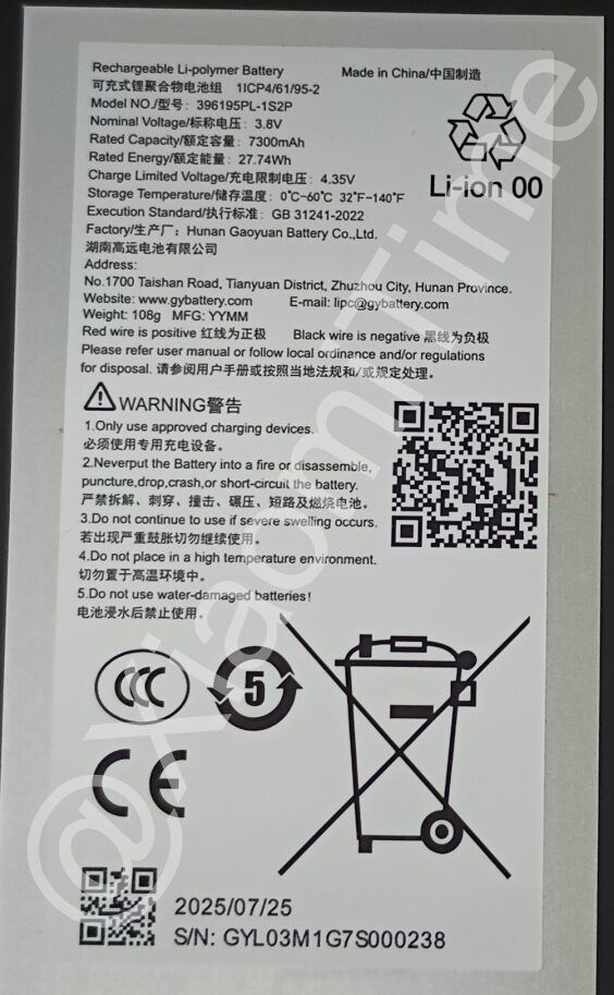 A kiszivárgott akkumulátor címke pontos információt ad a kapacitásról, amely 7300mAh, ami teljesen átlagos egy 10-11″ méretű tablet esetén.