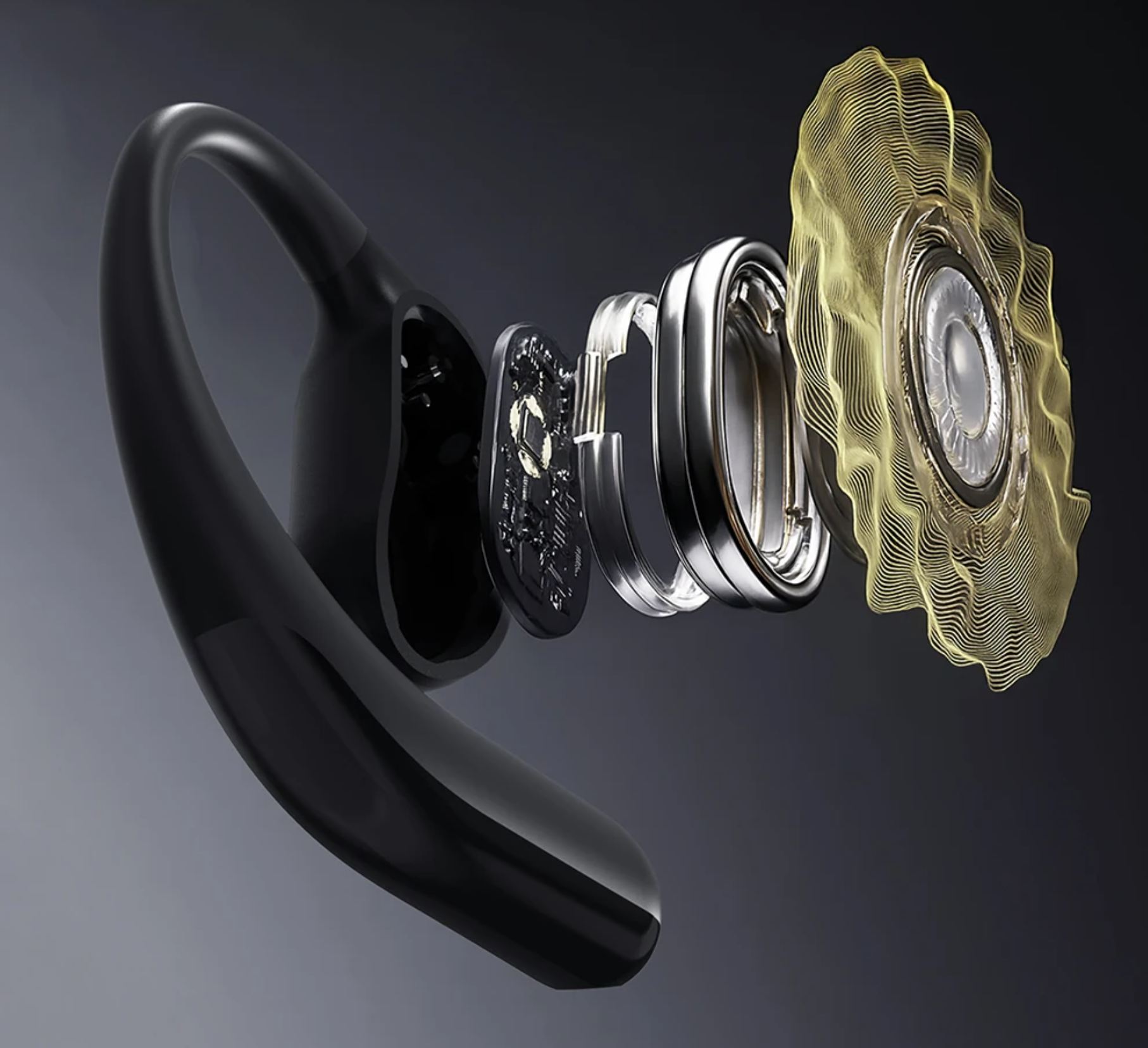 Egy nagyon nagy, 15mm-es, úgynevezett bone conduction hangszórója van, amely rezgésekkel továbbítja a hangot, amihez viszont lehet teljesen zárt.