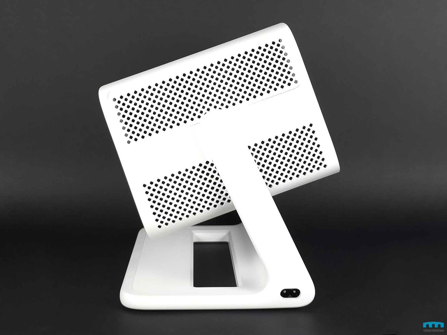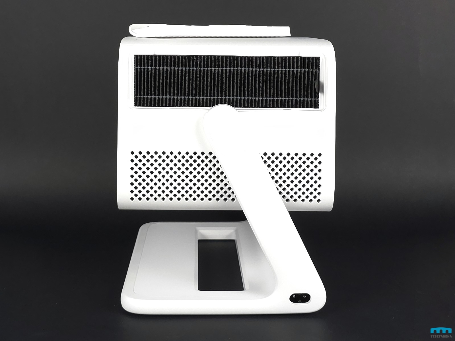 Ez egy gimbal projektor, ami azt jelenti, hogy van egy állványa, amiben fel-le állítható a vetítési szög, így nem kell külön állvány akkor sem, ha alacsonyabban van, mint ami szükséges.