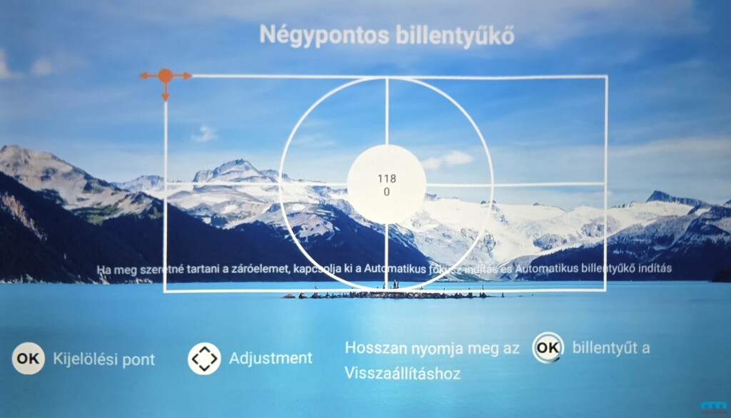 Négy ponton, vízszintesen és függőlegesen is lehetséges a korrekció.