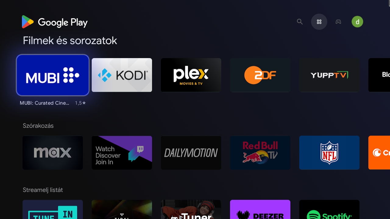Sokféle alkalmazás elérhető Android TV-re, van például fájlkezelő, böngésző, lejátszók, játékok, stb.