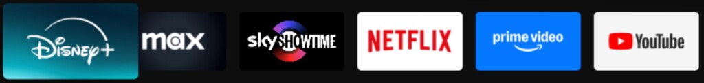 Működik a Netflix, Youtube, HBO (Max), Prime Video, Disney, SkyShowtime és például a Plex, Kodi is.