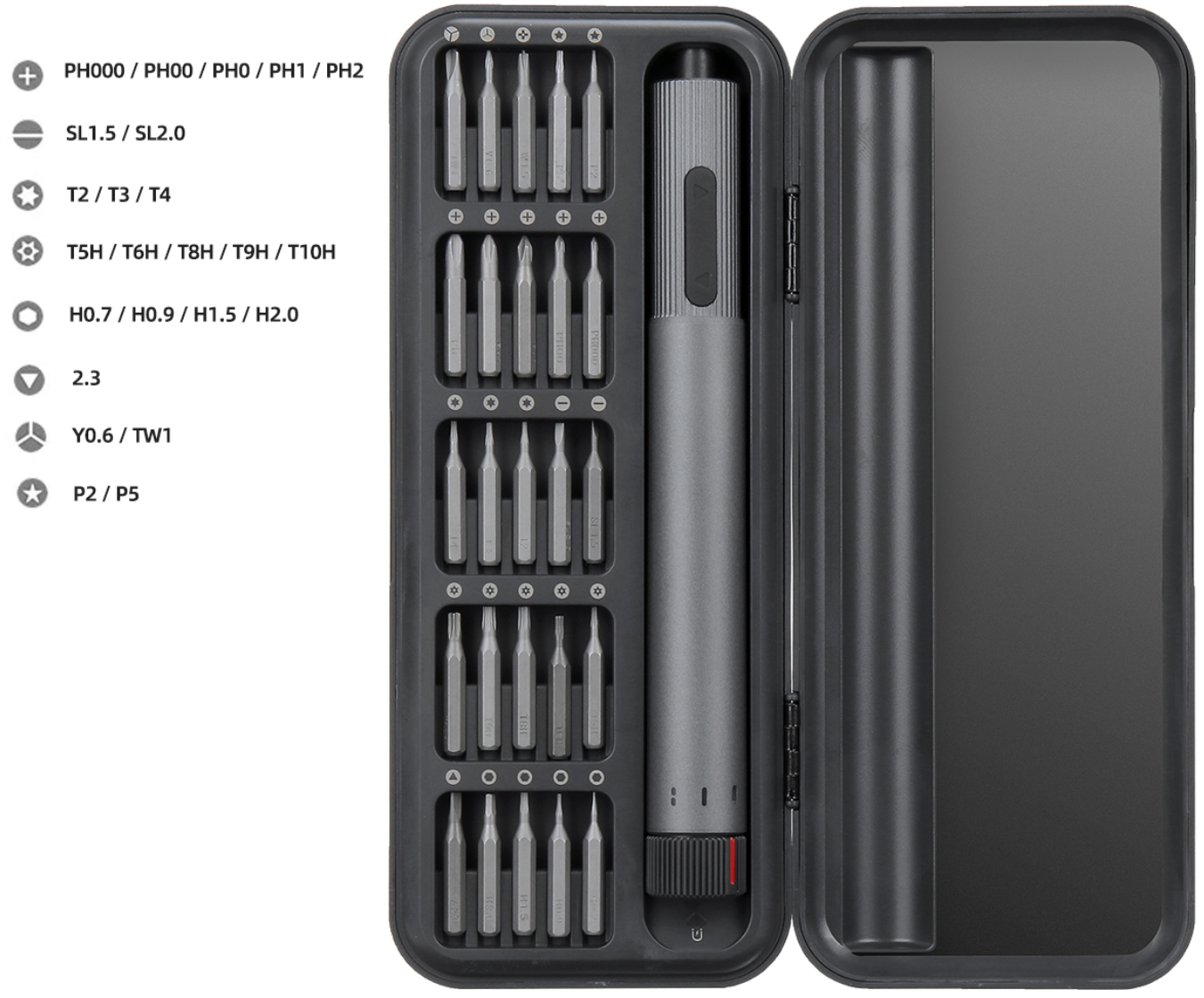 Többféle bitfejet ad, így gyakorlatilag lefedi a leggyakoribb csavartípusokat.