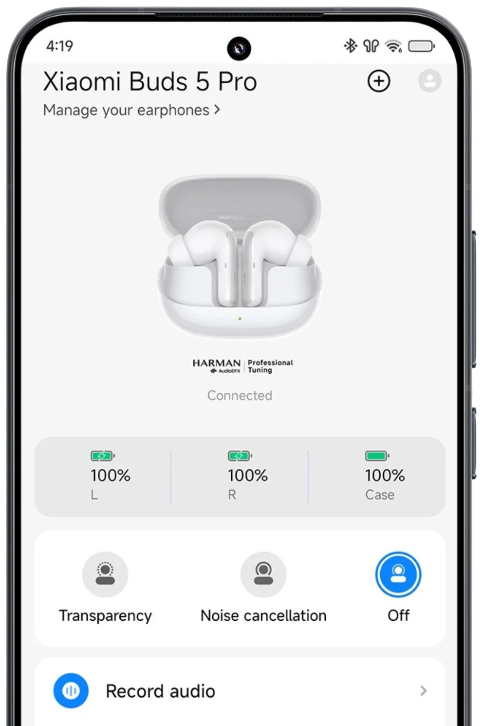 A Xiaomi a Buds 5 Pro-t egy önálló térbeli, Spatial Audio hangrendszerrel is ellátta, amely dinamikus fejkövetéssel működik, létrehozva egy 360 fokos, magával ragadó hangteret.