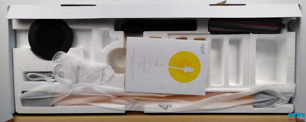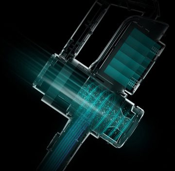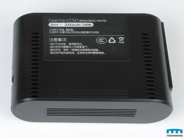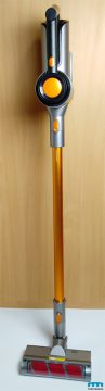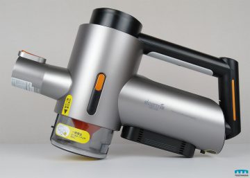 Az akkumulátora (a bal oldalon kilógó fekete doboz) kivehető, így ha van belőle több, akkor előre fel lehet tölteni egy hosszú ideig tartó porszívózás esetére.