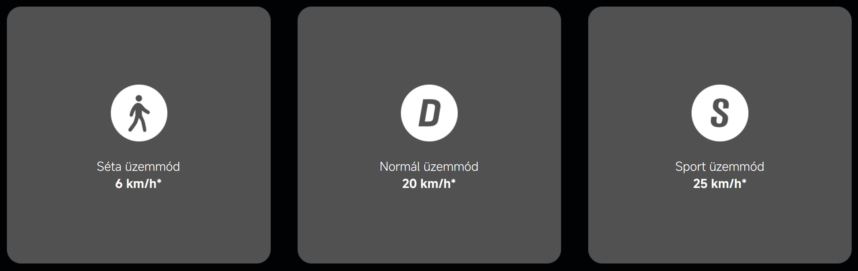 A végsebesség 25 km/h, amely a magyarországi jogszabályokkal is összeegyeztethető, de ezt kényelmesen lehet tartani nagyobb távolságokon is.