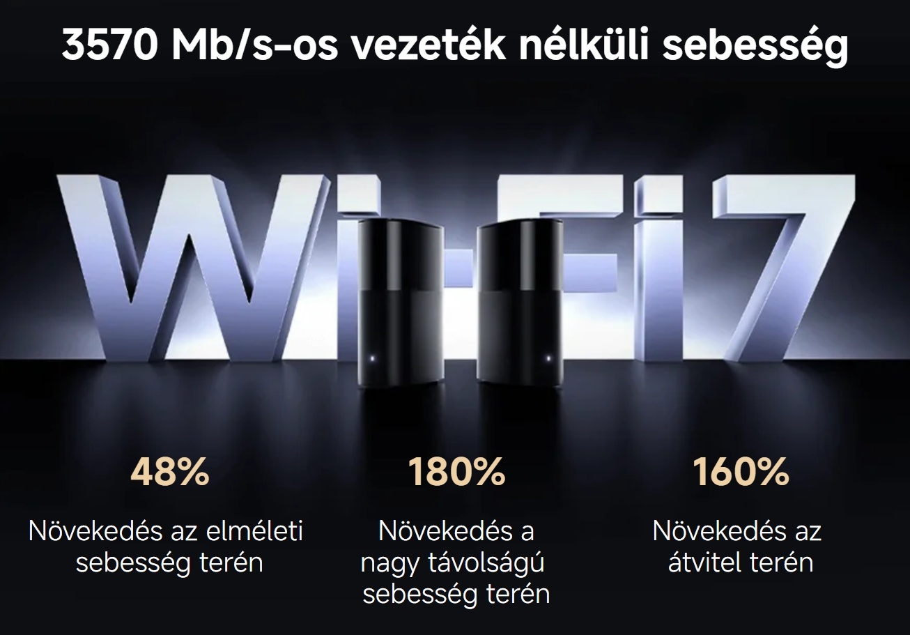 Wifi 7 (be) router, amely jelenleg a wifi csúcsa, a kompatibilis eszközökkel hatalmas sebességet biztosít. Természetesen visszafele kompatibilis, régebbi eszközökkel is használható.