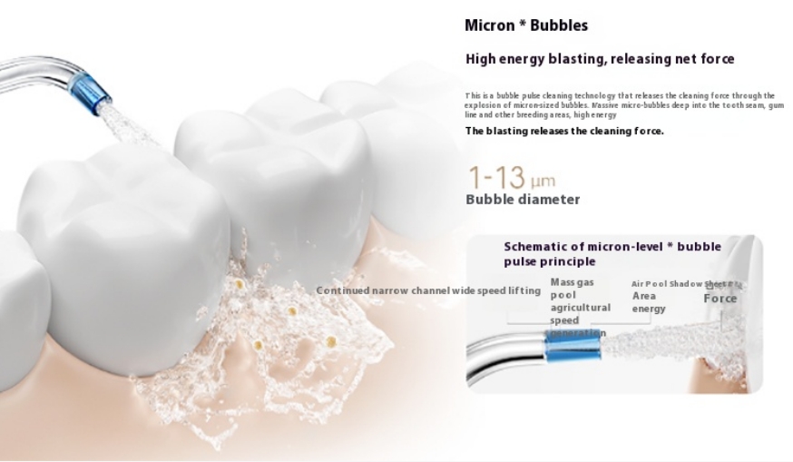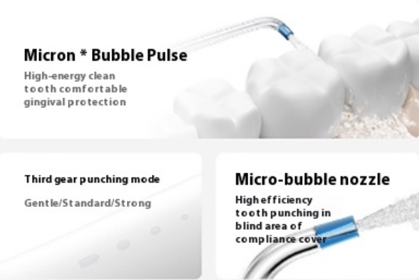 Az erőteljes, akár 1400 pulzálás/perc frekvenciájú vízsugár hatékonyan távolítja el a lepedéket és az ételmaradékokat a fogak közül, még a nehezen elérhető helyekről is.