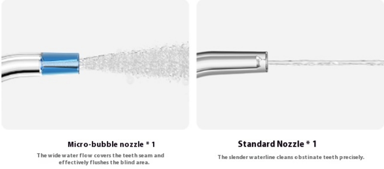 A csomagban kétféle fej található: egy standard és egy mikro-buborékos, amely hatékony a nehezen elérhető helyek tisztításában és nagy területet fed le, míg a hagyományos jobban célzott tisztítást biztosít.