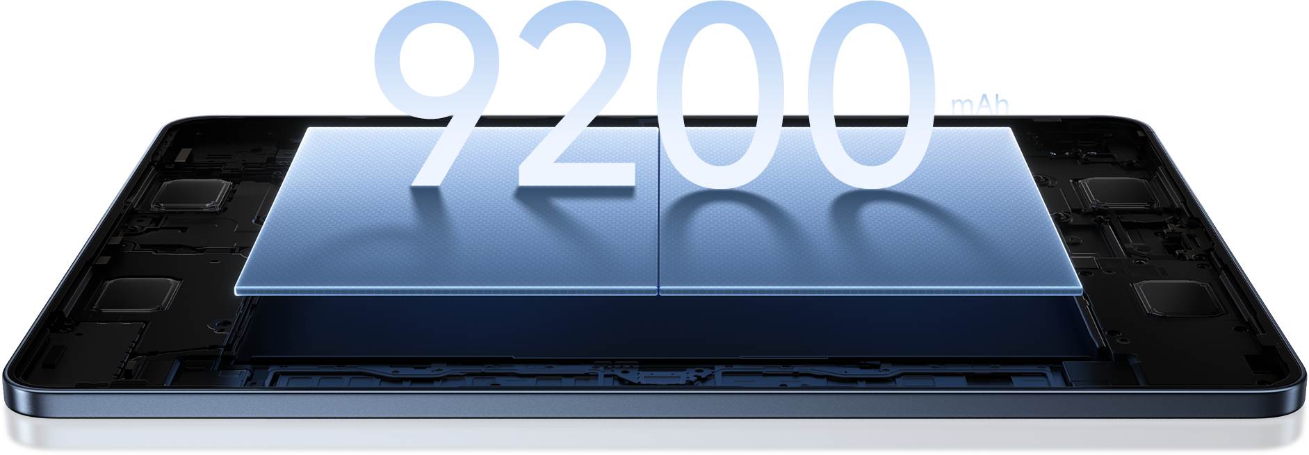 Egy 9200mAh-s nagy sűrűségű akkumulátor van benne 67W-os gyorstöltéssel és 22.5W-os fordított vezetékes töltéssel. A Xiaomi szerint 10.5 órányi játékidőt, 14 órás videólejátszást és több mint 20 órányi online meetinget biztosít.