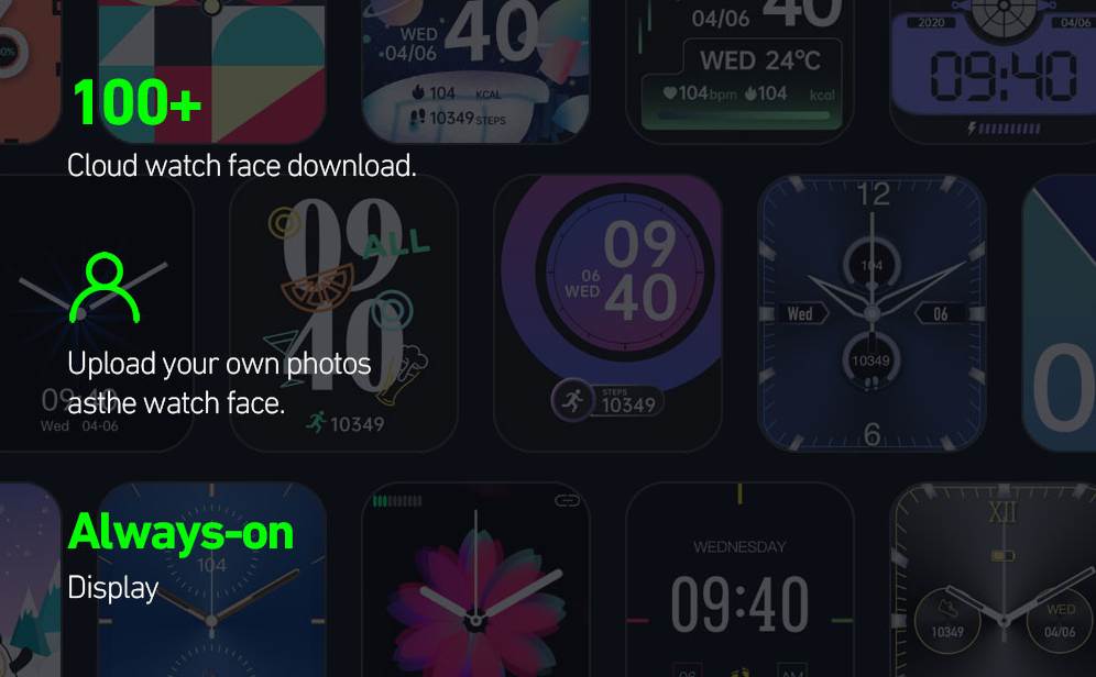 Nagy mennyiségű, 100 óralapból választhatja ki mindenki a számára szimpatikusat és támogatja az always on módot, vagyis a kijelző egy részét mindig bekapcsolva tartja, hogy mutassa az időt és más adatokat.
