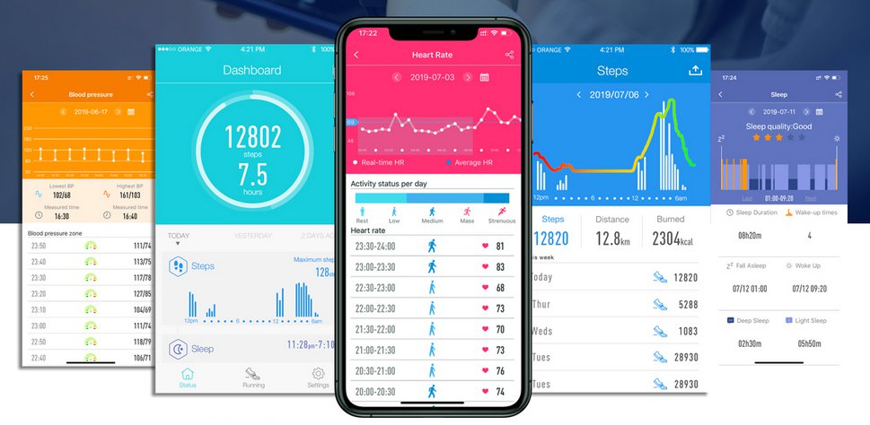 pulzusmérés, lépésszámlálás, megtett távolság mérés, elégetett kalória, sport módok (futás, stb.)